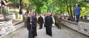 Σε κλίμα συγκίνησης, πραγματοποιήθηκε κατάθεση στεφάνων στην προτομή του Αλέξανδρου Υψηλάντη – ηγετικής μορφής της Φιλικής Εταιρείας και ποντιακής καταγωγής – από εκπροσώπους της Πολιτείας και των ποντιακών συλλόγων. Ακολούθησε η λιτάνευση της Ιεράς Εικόνας περιμετρικά του ναού, συνοδευόμενη από τη 9η Μηχανοποιημένη Ταξιαρχία Κοζάνης, ιερείς, εκπρόσωποι των αρχών, μέλη πολιτιστικών συλλόγων και πλήθος πιστών.