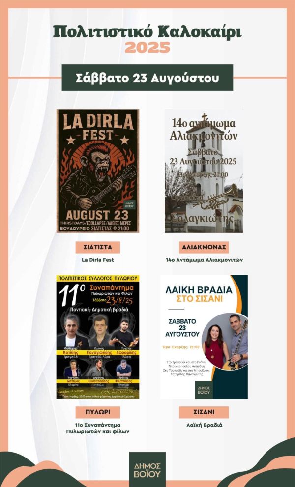 Δήμος Βοΐου: Πολιτιστικό καλοκαίρι – Σάββατο 23 Αυγούστου
