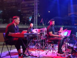 Ο αγαπητός και ταλαντούχος καλλιτέχνης ανέβηκε στη σκηνή στις 9.30μ.μ. παρασύροντας το κοινό σε μια μουσική διαδρομή με έντεχνα, λαϊκά και σύγχρονα ελληνικά τραγούδια. Η ερμηνευτική του δεινότητα και η αμεσότητα με τον κόσμο δημιούργησαν μια ζεστή και φιλική ατμόσφαιρα, γεμίζοντας την πλατεία με τραγούδι και χαμόγελα.