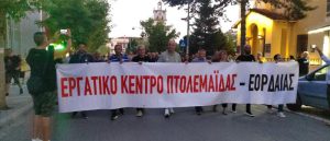 Μετά τη συγκέντρωση, πραγματοποιήθηκε πορεία διαμαρτυρίας από την πλατεία Νίκης έως τη Νομαρχία, με κατάληξη στην πλατεία Κοζάνης. Η κινητοποίηση εξελίχθηκε ειρηνικά, με τη συνδρομή της Τροχαίας και της Αστυνομίας, οι οποίες φρόντισαν για την ομαλή διεξαγωγή της κυκλοφορίας και την ασφάλεια των πολιτών.