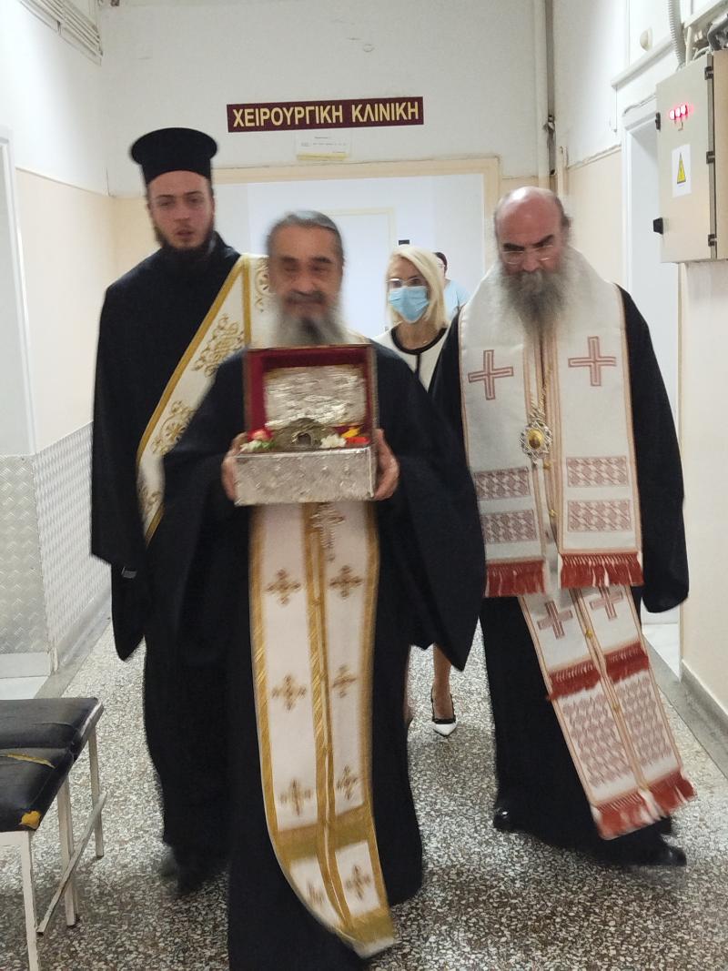 Πιστοί, περιπατητικοί ασθενείς, συνοδοί τους, αλλά και μέλη του Ιατρικού, Νοσηλευτικού, Διοικητικού και Λοιπού Προσωπικού έδωσαν το παρόν, τιμώντας την άφιξη της Τιμίας Κάρας. Ακολούθησε η τέλεση του Ιερού Ευχελαίου και στη συνέχεια, το Άγιο Λείψανο τέθηκε σε προσκύνημα, προσφέροντας αγιασμό και ελπίδα σε όλους τους παρευρισκόμενους.