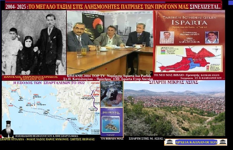 Τους πρότεινα να κάνουμε μια ελεύθερη συζήτηση την τηλεόραση του ΤΟP TV με το οποίο τότε συνεργαζόμουν παρουσιάζοντας την εκπομπή <<Συμβάλλοντας στην παράγωγη >> με γεωπονικά και οικονομικά θέματα ,αλλά και άλλα θέματα , εκτός με την βασική θεματολογία μας, δεχθήκαν αμέσως χωρίς δεύτερη συζήτηση και στην εκπομπή ήρθαν εκτός των άλλων τόσο ο κ. Isa Parlak Νομάρχης Isparta και ο κ. Eyup Ancular EBE (ITSO Isparta ) Συζητήσαμε χωρίς φόβο και πάθος ,χωρίς εμπάθειες για την Σπάρτη για όσα συνέβησαν τότε χωρίς να πούμε μισές αλήθειες και ψέμματα , το τι συνέβη , ποια ήταν οι σχέσεις μεταξύ Χριστιανών και Μπουσουλισμένων ,τον πόθο που είχαν οι πρόσφυγες να επιστρέψουν ξανά στην γενέθλια γη ,την βοήθεια που προσφέρθηκε από τις τοπικές αρχές για να αποφευχθεί η έξοδος των Σπαρταλήδων από την εμπόλεμη ζώνη και να αναχωρήσουν για την Ελλάδα από την Αττάλεια που ήταν πιο ασφαλής .Ήταν μια εκπομπή που έμεινε τουλάχιστον για μένα χαραγμένη για πάντα στην μνήμη μου και από εκεί άρχισε το νοερό ταξίδι για τις αλησμόνητες πατρίδες , οχι μόνο της πατρίδας του πάτερα μου και της μητέρας μου αλλά και ολοκλήρου του Μικρασιατικού Ελληνισμού.