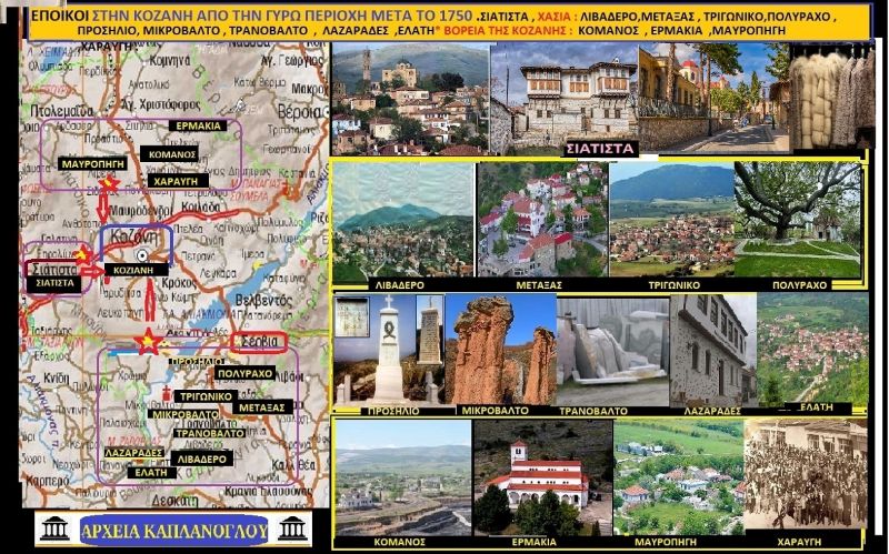 ΙΣΤΟΡΙΑ ΤΗΣ ΚΟΖΑΝΗΣ 27ο: Σιάτιστα,Λιβαδερό ,Μεταξάς,Τριγωνικό ,Πύλυρραχο,Προσήλιο.Μικρόβαλτο.Τρανόβαλτο,Λαζαράδες,Ελάτη .Κόμανος, Ερμακία, Μαυροπηγή, ΧαραυγήΌπως είδαμε στην προηγούμενη δημοσίευση για την ιστορία της Κοζάνης μετά το 1750 ο Π.Λιουφης έγραφε στην ιστορία που εκδόθηκε το 1924 για την προσέλευση και εγκατάσταση στη Κόζιανη πολλών κάτοικων από τα γύρω χωριά και κωμοπόλεις μτα το 1750 .: