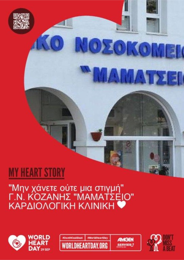 «Μην χάνετε ούτε μια στιγμή»: Μήνυμα του Μαμάτσειου Γ.Ν. Κοζάνης για την Παγκόσμια Ημέρα Καρδιάς