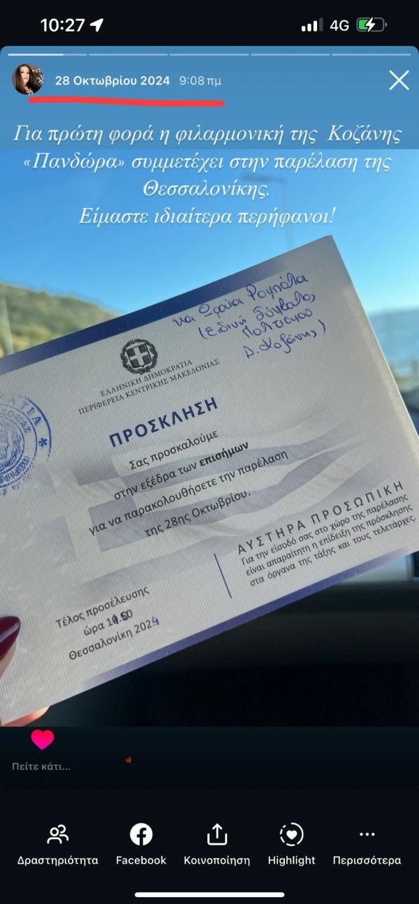 Επειδή η μνήμη καμιά φορά μάς προδίδει — ή ίσως η διάθεση για παραπληροφόρηση αποδεικνύεται πιο ισχυρή — παραθέτω μερικά στιγμιότυπα (screenshots) και ένα βίντεο από το ΑΡΧΕΙΟ ΙΣΤΟΡΙΩΝ των προσωπικών μου λογαριασμών κοινωνικής δικτύωσης, την ημέρα της 28ης Οκτωβρίου στη Θεσσαλονίκη, όπου βρέθηκα δίπλα στην “Πανδώρα” μας. Οι ημερομηνίες μιλούν από μόνες τους.