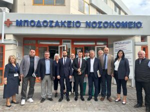 Με την συμμετοχή του Προέδρου του Περιφερειακού Συμβουλίου και μέλους του Δ.Σ. του νοσοκομείου Νίκου Σαμαρά, του Αντιπεριφερειάρχη Υγείας & Κοινωνικής Συνοχής Τάσου Φούντογλου, του Αντιπεριφερειάρχη Τεχνικών Έργων Λάζαρου Γκερεχτέ, της Εντεταλμένης Συμβούλου Συμπερίληψης Ελένης Χονδροματίδου, του Υποδιοικητή της 3ης ΥΠΕ Γιώργου Ταρασίδη, του Διοικητή του Μποδοσάκειου Ιωάννη Κετικίδη και του μέλους του Δ.Σ. Κοσμά Πουγαρίδη επιβεβαιώθηκε το πλαίσιο συνεργασίας της Περιφερειακής Αρχής με τη Διοίκηση της 3ης ΥΠΕ και αντίστοιχα με τη Διοίκηση του Νοσοκομείου.
