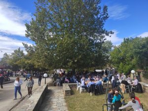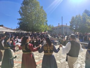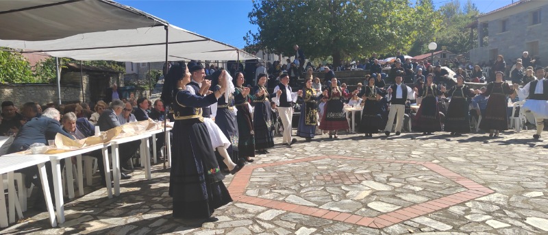 Η πλατεία του χωριού, σε μια αυθεντικά παραδοσιακή ατμόσφαιρα, υποδέχθηκε ντόπιους και επισκέπτες σε μια γιορτή αφιερωμένη στο κρασί, την παράδοση και τη μουσική.