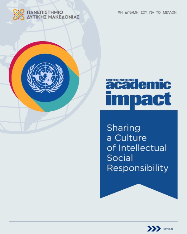 Ένα ακόμη βήμα στη διεθνή του πορεία πραγματοποιεί το Πανεπιστήμιο Δυτικής Μακεδονίας με την ένταξή του στο Ακαδημαϊκό Δίκτυο των Ηνωμένων Εθνών (United Nations Academic Impact – UNAI). Η εξέλιξη αυτή αναδεικνύει τη στρατηγική κατεύθυνση του ΠΔΜ προς τη διεθνοποίηση και, ταυτόχρονα, τη δέσμευσή του να συμβάλλει στην αντιμετώπιση ζητημάτων παγκόσμιου ενδιαφέροντος μέσα από την εκπαίδευση και την έρευνα. Έτσι, το ΠΔΜ συγκαταλέγεται πλέον ανάμεσα στα 1.800 ιδρύματα από 150 χώρες που μοιράζονται κοινές αξίες και στόχους για ένα πιο δίκαιο και βιώσιμο μέλλον.