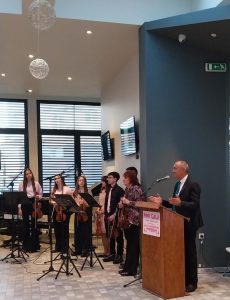 Την εκδήλωση πλαισίωσαν μουσικά η αρπίστα κ. Αγάπη Φασούλα, και το σύνολο εγχόρδων της τάξης βιολιού της κας Λουντμίλας Αχιμπάλοβα, του Δημοτικού Ωδείου Κοζάνης, συνοδευόμενα από την πιανίστα Γλύκα Κουτούλα, που προσέφεραν τη δική τους ξεχωριστή νότα στην εκδήλωση.