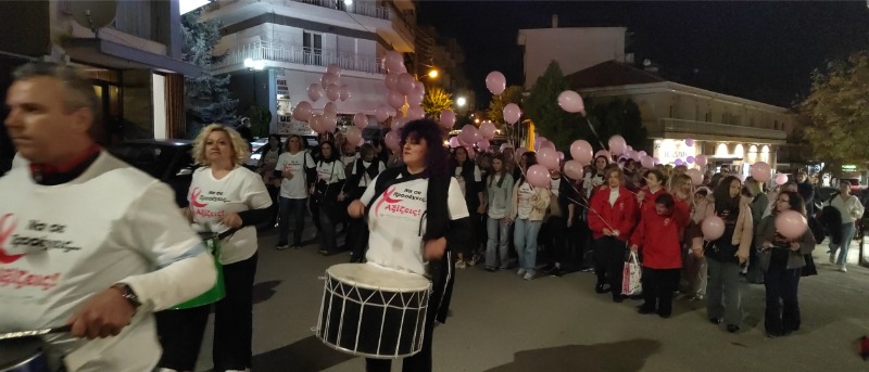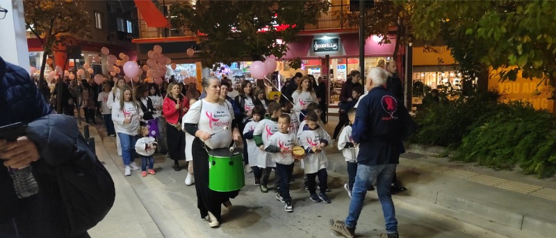 Η πορεία ξεκίνησε μετά τις 7.30 μ.μ. από το κεντρικό κτίριο του Διαγνωστικού Κέντρου, “Ιπποκράτης”, συγκεντρώνοντας δεκάδες συμμετέχοντες κάθε ηλικίας, που με ροζ μπαλόνια, μπλουζάκια και χαμόγελα, διέσχισαν τους κεντρικούς δρόμους της πόλης. Την πορεία πλαισίωσε μουσικά η «Συνωμοσία των Κρουστών» του ΔΩΚ., προσδίδοντας ρυθμό και παλμό στην εκδήλωση.