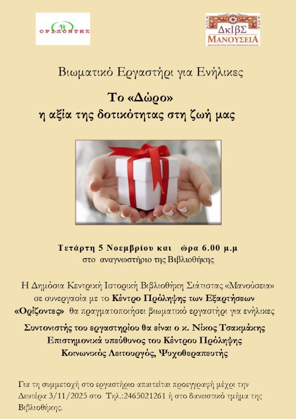 Βόιο 25/10/2025 Βιωματικό Εργαστήρι για ενήλικες στη Σιάτιστα 0 Βιωματικό Εργαστήρι για ενήλικες στη Σιάτιστα