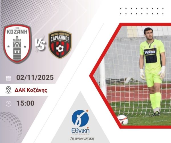 Το Φ.Σ. Κοζάνη καλεί τους φιλάθλους και φίλους της ομάδας να βρεθούν για ακόμη μία φορά στο πλευρό των ποδοσφαιριστών μας, αυτή την Κυριακή στο ΔΑΚ Κοζάνης, στις 15:00, όπου θα αντιμετωπίσουμε τον Σαρακηνό Βόλου, στο πλαίσιο της 7ης αγωνιστικής του πρωταθλήματος της Γ’ Εθνικής.
