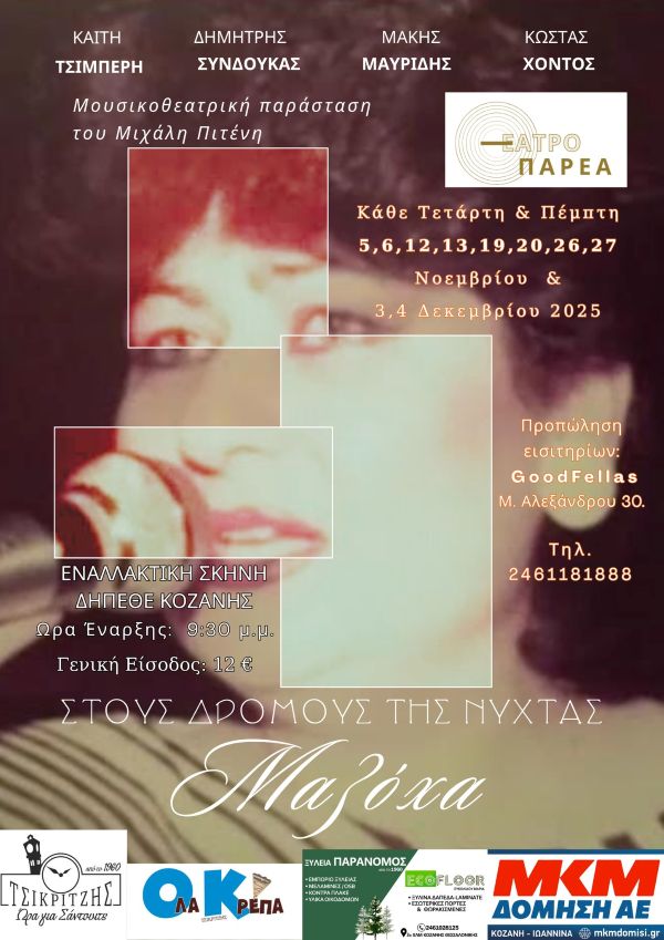 Το Θέατρο ΠΑΡΕΑ σας προσκαλεί στη μουσικοθεατρική παράσταση του Μιχάλη Πιτένη με τίτλο: Στους Δρόμους της Νύχτας ΜΑΖΟΧΑ