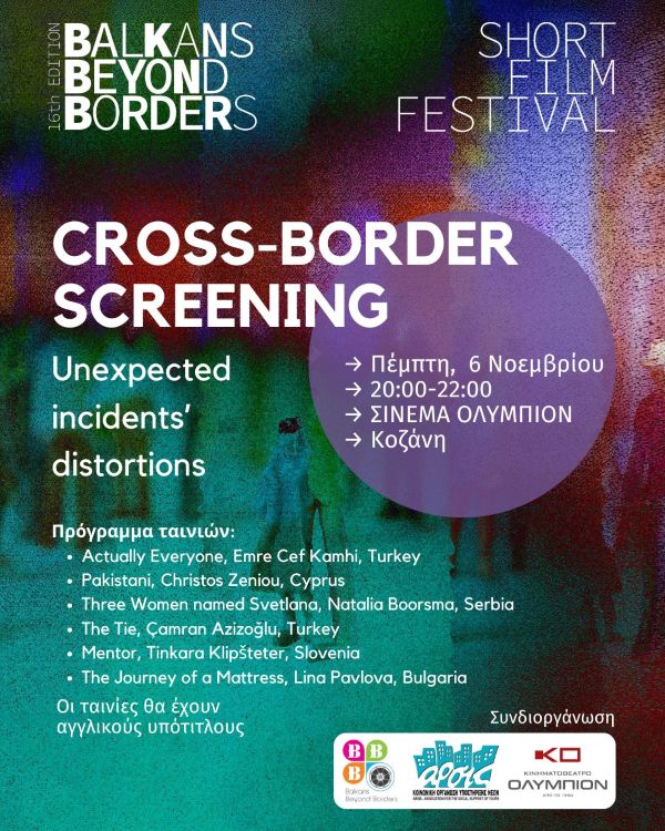 Η 16η διοργάνωση του Φεστιβάλ Ταινιών Μικρού Μήκους των Balkans Beyond Borders (BBB) κάνει στάση στην Κοζάνη, με μια ξεχωριστή προβολή στο πλαίσιο του BBB Cross-Border Screening, σε συνεργασία με την ΑΡΣΙΣ Κοζάνης. Την Πέμπτη 6 Νοεμβρίου 2025, από τις 20:00 έως τις 22:00, το κοινό της πόλης θα έχει την ευκαιρία να παρακολουθήσει στο Κινηματοθέατρο Ολύμπιον ένα μοναδικό πρόγραμμα προβολών που θα πραγματοποιηθεί ταυτόχρονα σε πολλές βαλκανικές πόλεις.