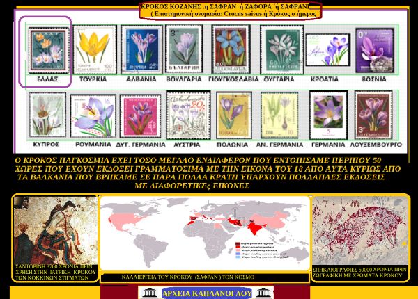 Η σημασία του φαίνεται από μια μικρή έρευνα που κάναμε και το κολάζ των φωτογραφιών που παραθέτουμε όπου βλέπει κανείς σε γραμματόσημα που προβάλουν το κρόκο κατά καιρούς που έχουν εκδοθεί παγκόσμια σε πάνω από 50 χώρες ( οι18 στο κολάζ ) με ένα παγκόσμιο χάρτη της κατανομής της καλλιέργειας και 2 φωτογραφίες από τοιχογραφία της Σαντορίνης με χρήση ιατρική 3700 ετών και σπηλαιογραφίας 50.000 ετών από τα σύνορα Ιράκ-Ιράν με χρήση στην ζωγραφική.