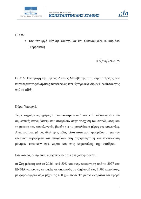 - τη μείωση και κατάργηση του ΕΝΦΙΑ και
