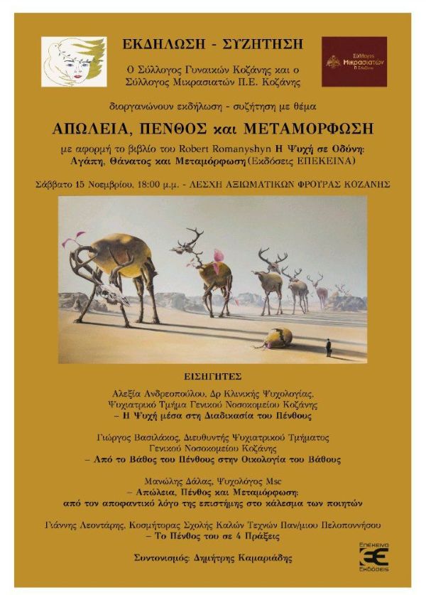 Ο Σύλλογος Γυναικών και ο Σύλλογος Μικρασιατών Ν. Κοζάνης, σας προσκαλούν σε μια ενημερωτική συνάντηση – συζήτηση με θέμα: «Απώλεια, Πένθος και Μεταμόρφωση»