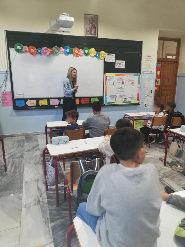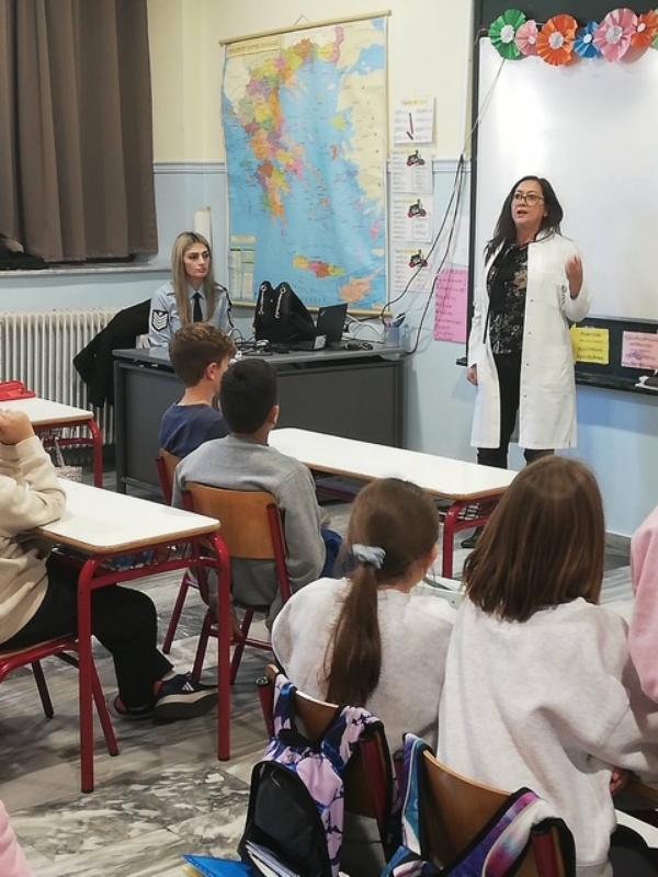 Πραγματοποιήθηκε από την Ανθυπαστυνόμο κα. Ελένη Λαζάρου της Διεύθυνσης Αστυνομίας Κοζάνης ενημερωτική διάλεξη για το επάγγελμα του αστυνομικού στους μαθητές του 1ου Δημοτικού Σχολείου Κρόκου Κοζάνης, με στόχο την ενημέρωση και εξοικείωσή τους με τον ρόλο, τις αξίες και τα καθήκοντα της Ελληνικής Αστυνομίας.Κατά τη διάρκεια της διάλεξης συμμετείχε και η Υπηρεσιακή Ιατρός της Γενικής Περιφερειακής Αστυνομικής Διεύθυνσης Δυτικής Μακεδονίας, Υπαστυνόμος Β΄(ΥΓ.) κα. Γεωργία Παπαγιάννη, η οποία παρείχε ενημέρωση σχετικά με θέματα υγιεινής και σωματικής υγείας, την πρόληψη ατυχημάτων, καθώς και την υιοθέτηση υγιών και ασφαλών συμπεριφορών από τους μαθητές, με στόχο την ενίσχυση της γνώσης, της πρόληψης και της υπεύθυνης στάσης των μαθητών σε ζητήματα καθημερινής ασφάλειας.