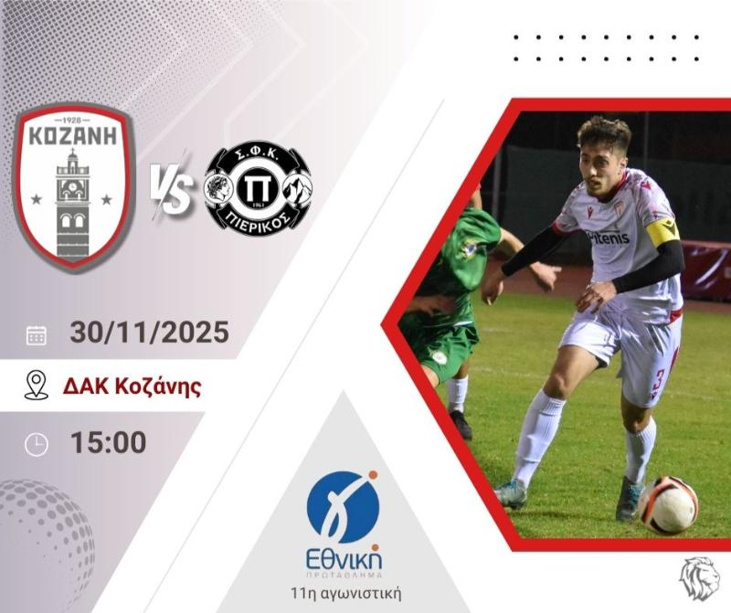 Το Φ.Σ. Κοζάνη απευθύνει ανοικτή πρόσκληση στους φίλους του συλλόγου και σε όλους τους πολίτες, να βρεθούν την Κυριακή στις 15:00 στο ΔΑΚ Κοζάνης για το απαιτητικό και αμφίρροπο παιχνίδι απέναντι στον Πιερικό, στο πλαίσιο της 11ης αγωνιστικής της Γ’ Εθνικής.