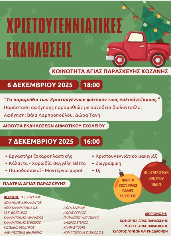 Χριστουγεννιάτικες εκδηλώσεις στην ΤΚ Αγίας Παρασκευής Κοζάνης – 6 & 7 Δεκεμβρίου – Δείτε το πρόγραμμα