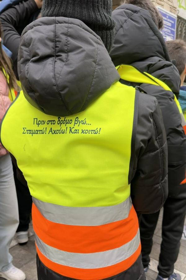 Σε όλους τους συμμετέχοντες μαθητές διανεμήθηκε φωσφορούχο γιλέκο, με σκοπό τη χρήση αυτού κατά τις μετακινήσεις τους.