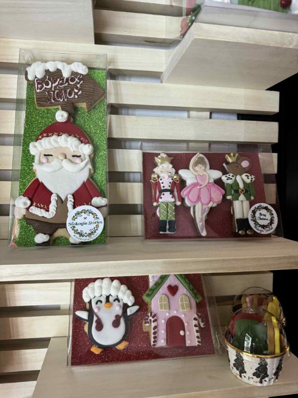Ανακαλύψτε χειροποίητα μπισκότα και γλυκίσματα σε εντυπωσιακά χριστουγεννιάτικα σχέδια: Άγιο Βασίλη, χιονάνθρωπους, gingerbread φιγούρες, μπισκοτόσπιτα, festive συνθέσεις, καθώς και κλασικά μελομακάρονα, κουραμπιέδες και βασιλόπιτες. Κάθε κομμάτι είναι καλλιτεχνικά διακοσμημένο και ιδανικό για δώρα ή για το γιορτινό σας τραπέζι.
