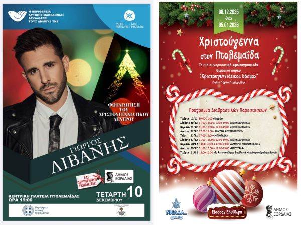Ο Δήμος Εορδαίας σας προσκαλεί στην φωταγώγηση του Χριστουγεννιάτικου Δέντρου και στην χριστουγεννιάτικη συναυλία στην Κεντρική Πλατεία Πτολεμαΐδας.
