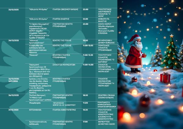 Πρόγραμμα εκδηλώσεων 15 – 21 Δεκεμβρίου 2025