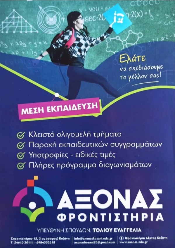 Το Φροντιστήριο Μ.Ε. Άξονας προσφέρει ολοκληρωμένη και ποιοτική υποστήριξη στη Μέση Εκπαίδευση, με στόχο τη σταθερή πρόοδο και την επιτυχία κάθε μαθητή.