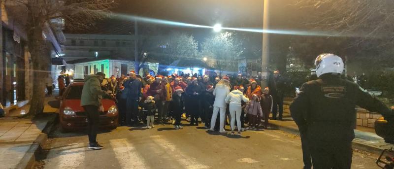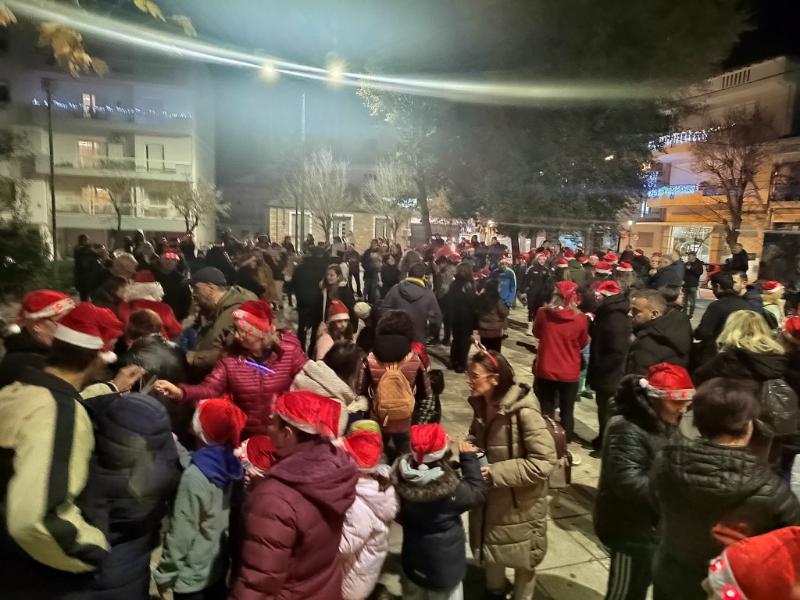 Μικροί και μεγάλοι συμμετέχοντες, φορώντας τα κόκκινα σκουφάκια που μοιράστηκαν δωρεάν από τον Σύλλογο, πλημμύρισαν τους δρόμους της αγοράς, μετατρέποντάς τους σε μια μεγάλη χριστουγεννιάτικη γιορτή. Η διαδρομή ολοκληρώθηκε στην οδό Βενιζέλου, όπου ακολούθησε μικρό πάρτι για όλο τον κόσμο, με μουσική, χαμόγελα και εορταστική διάθεση.