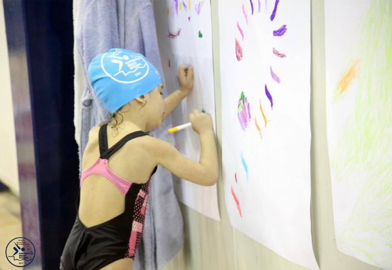 Η πισίνα μετατράπηκε σε έναν χώρο γεμάτο παιχνίδι, δημιουργία και φαντασία, με τα παιδιά να ζωγραφίζουν, ενώ αρκετά από αυτά είχαν την ευκαιρία να βάψουν το πρόσωπό τους με χριστουγεννιάτικα χρώματα.