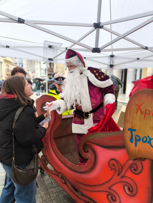 Στη δράση συμμετείχε και ο Άγιος Βασίλης του Τμήματος Τροχαίας Κοζάνης, ο οποίος μοίραζε γλυκίσματα, κεράσματα και ευχές  σε διερχόμενους πολίτες