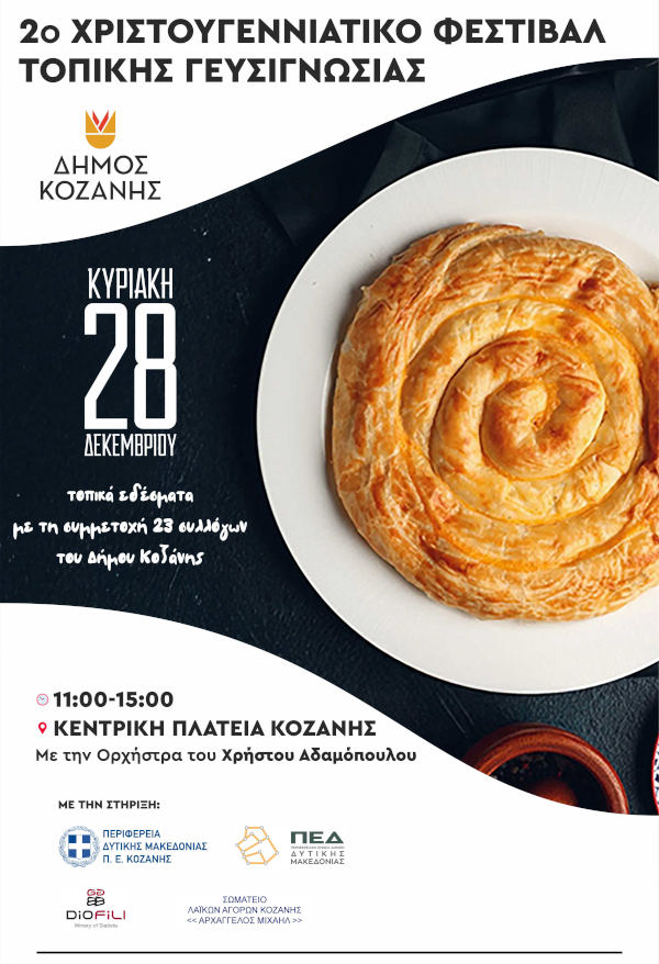Σε γιορτινούς ρυθμούς κινείται ο Δήμος Κοζάνης, ο οποίος την Κυριακή 28 Δεκεμβρίου 2025 διοργανώνει το 2ο Χριστουγεννιάτικο Φεστιβάλ Τοπικής Γευσιγνωσίας, μια εκδήλωση αφιερωμένη στις τοπικές γεύσεις, την παράδοση και τη συλλογικότητα.