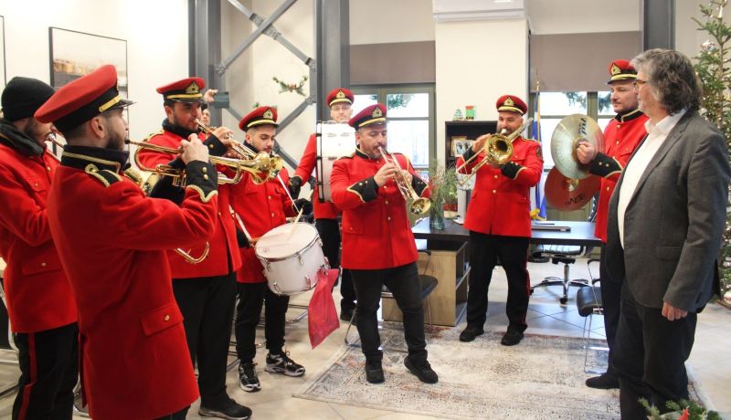 Ανήμερα των Χριστουγέννων, το γραφείο του Δημάρχου γέμισε χαμόγελα και γιορτινή ατμόσφαιρα. Τα παιδιά, η Φιλαρμονική Μπάντα του Δήμου Σερβίων, καθώς και μέλη της Ευξείνου Λέσχης Σερβίων, του ΚΑΠΗ Σερβίων και του Μορφωτικού Ομίλου Σερβίων «Τα Κάστρα», τραγούδησαν τα κάλαντα, φέρνοντας ζεστασιά και χαρά σε όλους τους παρευρισκόμενους.