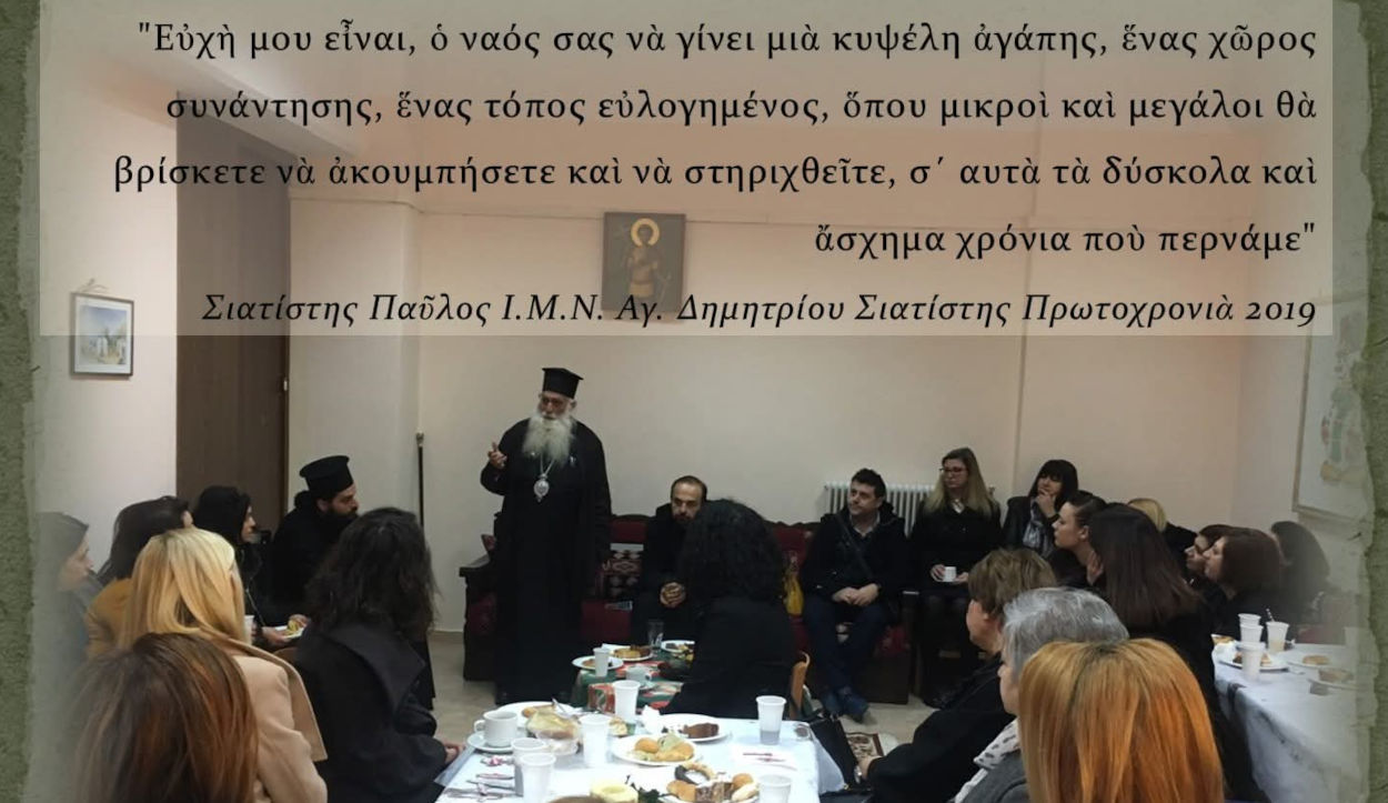 «Ευχή μου είναι ο Ναός σας να γίνει μια κυψέλη αγάπης, ένας χώρος συνάντησης, ένας χώρος ευλογημένος, όπου μικροί και μεγάλοι θα βρίσκετε να ακουμπήσετε και να στηριχθείτε σε αυτά τα δύσκολα και άσχημα χρόνια που περνάμε…»