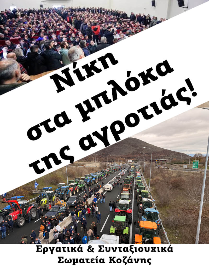 Την αλληλεγγύη τους στον πολύμηνο αγώνα των αγροτών και των ανθρώπων της πρωτογενούς παραγωγής εκφράζουν εργατικά και συνταξιουχικά σωματεία της Περιφερειακής Ενότητας Κοζάνης, καταγγέλλοντας την κυβερνητική στάση απέναντι στις κινητοποιήσεις και καλώντας τον λαό να σταθεί στο πλευρό της αγροτιάς.