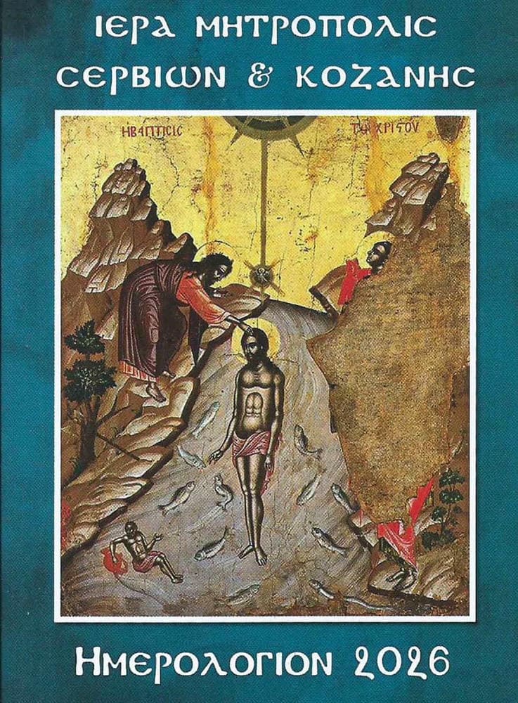 Κυκλοφορεί ήδη το Ημερολόγιο (τσέπης) 2026 της Ιεράς Μητροπόλεως Σερβίων και Κοζάνης αφιερωμένο στο ‘’μυστήριο της Βαπτίσεως’’ (σελ. 1).