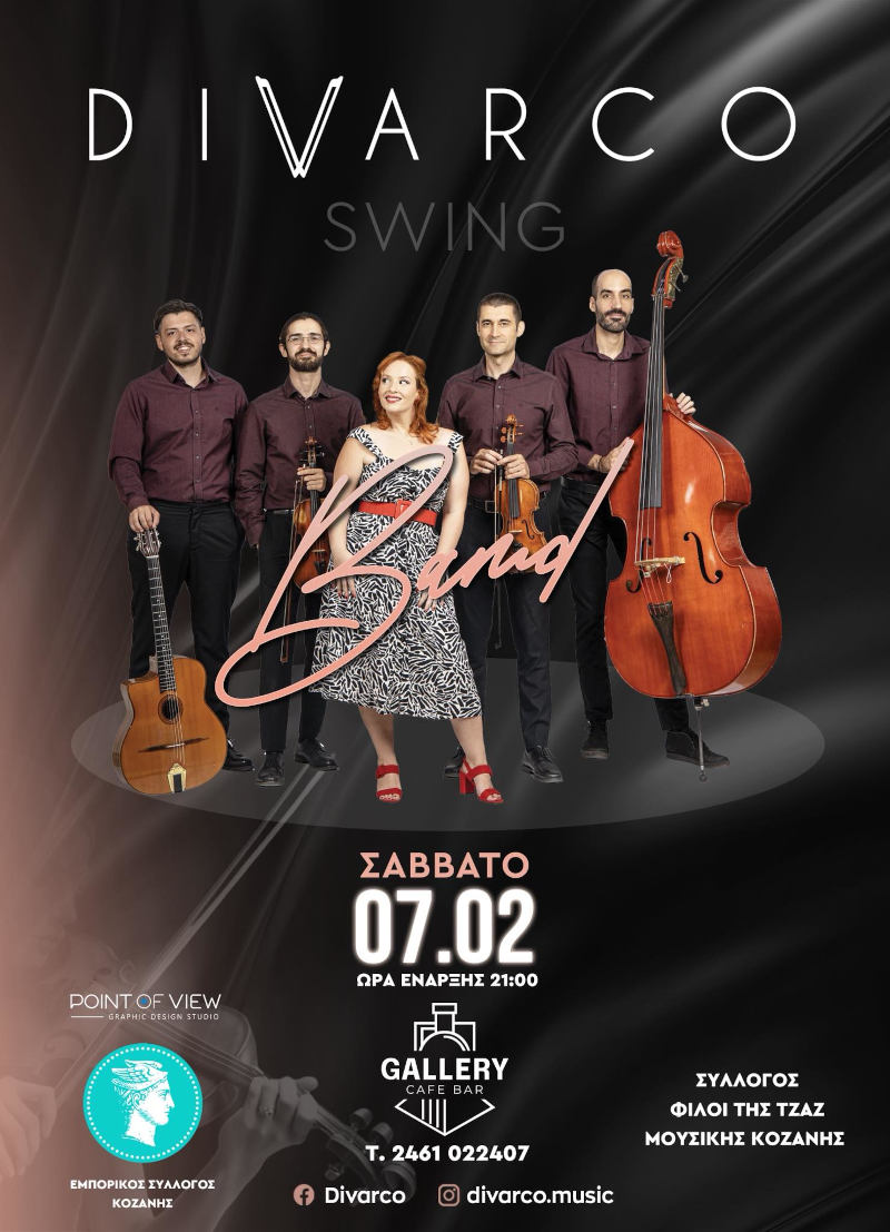 Τη βραδιά θα ντύσει μουσικά το Gypsy Swing Jazz σχήμα Divarco, σε ένα χαλαρό social event, γιατί η τζαζ είναι πάνω απ’ όλα διάθεση, ρυθμός και μοίρασμα.
