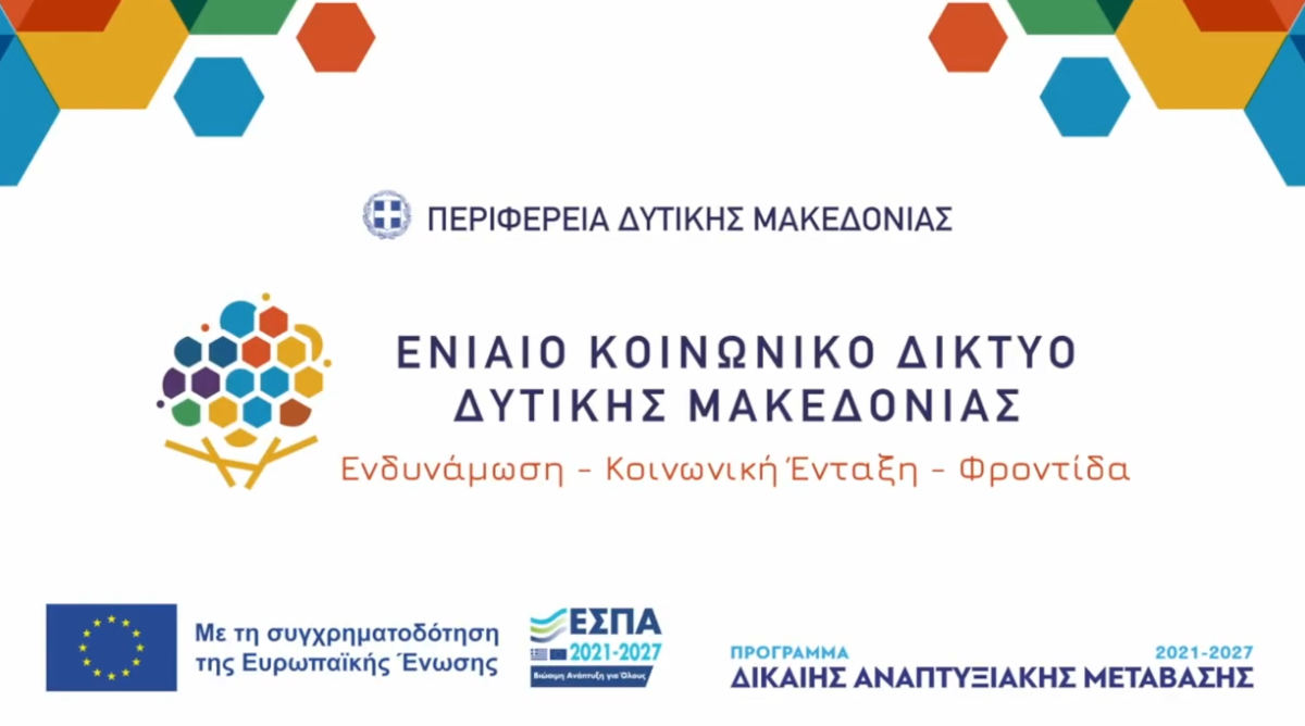 Ενιαίο Κοινωνικό Δίκτυο Δυτικής Μακεδονίας Ένα δίχτυ προστασίας για τις πιο ευάλωτες κοινωνικές ομάδες της περιοχής. Με αρωγό την Δίκαιη Μετάβαση, η Περιφέρεια Δυτικής Μακεδονίας και οι 13 δήμοι της περιοχής δημιουργούν μια πρωτοποριακή υποδομή που αλλάζει τον τρόπο παροχής κοινωνικών υπηρεσιών.