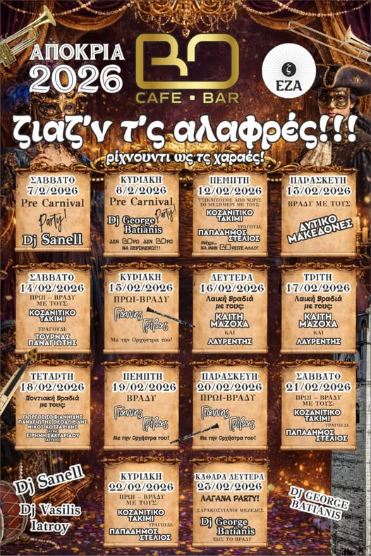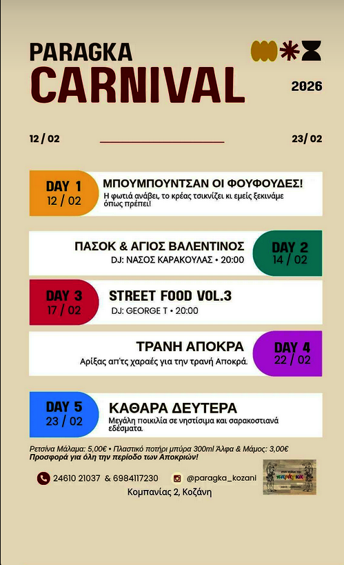 Πλούσιες αποκριάτικες εκδηλώσεις με πολλά events και εκπλήξεις επιφυλάσσει το πρόγραμμα του πιο must μαγαζιού της Κοζάνης κατά τη διάρκεια της φετινής Αποκριάς.
