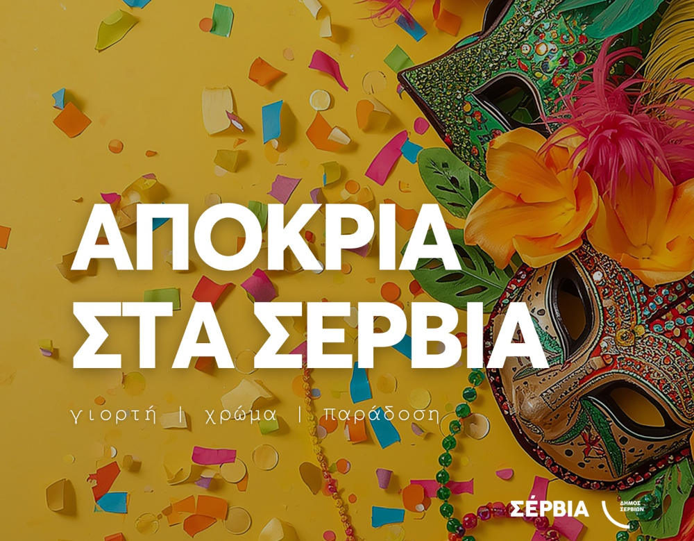 Ο Δήμος Σερβίων ευχαριστεί θερμά όλους όσοι συνέβαλαν στην επιτυχία της φετινής Αποκριάς. Εθελοντές, συλλόγους, καρναβαλιστές, χορηγούς, υπηρεσίες, καθώς και κάθε πολίτη και επισκέπτη που στήριξε με την παρουσία του τη φετινή διοργάνωση.