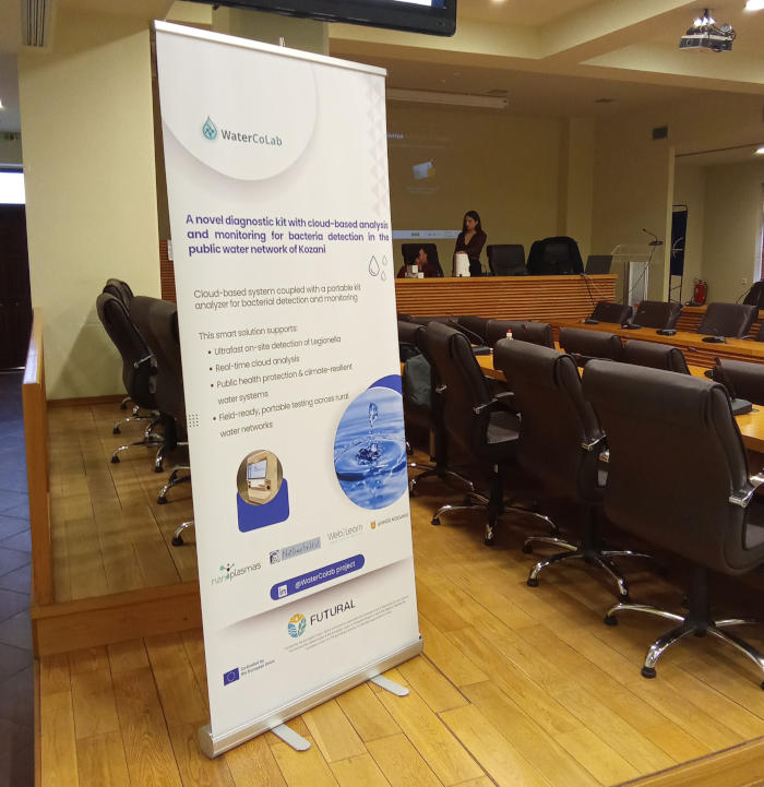 Από την Nanoplasmas, η κα. Αθανασία Ουτσκούνη παρουσίασε το καινοτόμο κιτ και τον φορητό αναλυτή για τον ταχύ έλεγχο της ποιότητας του νερού και την ανίχνευση του βακτηρίου της λεγεωνέλλας, πραγματοποιώντας σχετική επίδειξη.