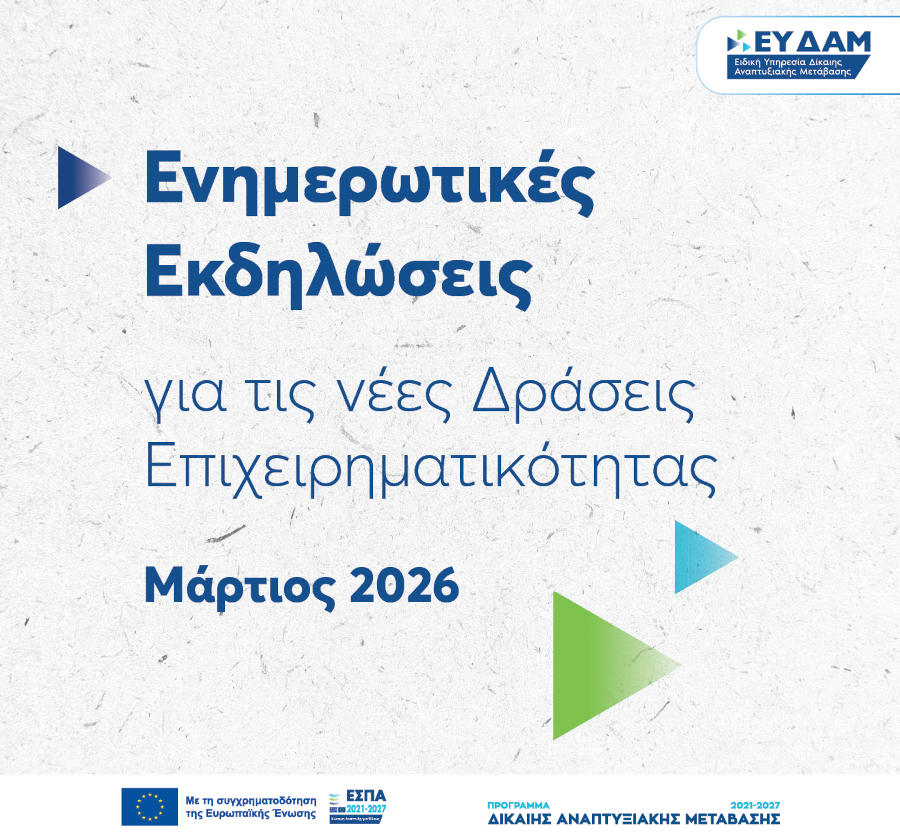 Με κεντρικό στόχο την έμπρακτη στήριξη της τοπικής επιχειρηματικότητας, η Ειδική Υπηρεσία Δίκαιης Αναπτυξιακής Μετάβασης (ΕΥΔΑΜ) σε συνεργασία με τον Ενδιάμεσο Φορέα Επιχειρησιακών Προγραμμάτων Ανταγωνιστικότητας και Επιχειρηματικότητας (ΕΦΕΠΑΕ) και την Ελληνική Αναπτυξιακή Τράπεζα (ΕΑΤ), ξεκινά έναν νέο, δυναμικό κύκλο ανοιχτών συναντήσεων με τις τοπικές κοινωνίες της Δυτικής Μακεδονίας και της Μεγαλόπολης.