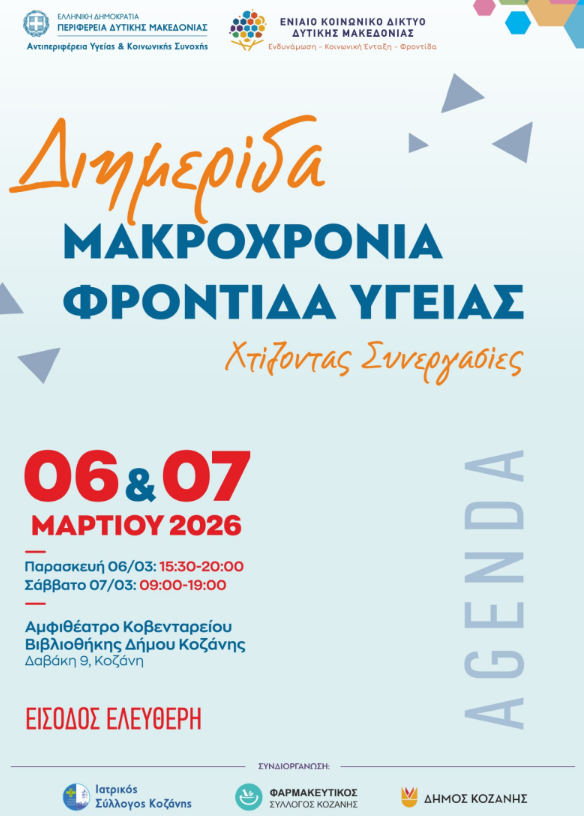 Στο επίκεντρο της επιστημονικής και κοινωνικής συζήτησης τίθεται η Μακροχρόνια Φροντίδα Υγείας μέσα από τη σημαντική διημερίδα με τίτλο «Χτίζοντας Συνεργασίες», που θα πραγματοποιηθεί την Παρασκευή 6 και το Σάββατο 7 Μαρτίου 2026.