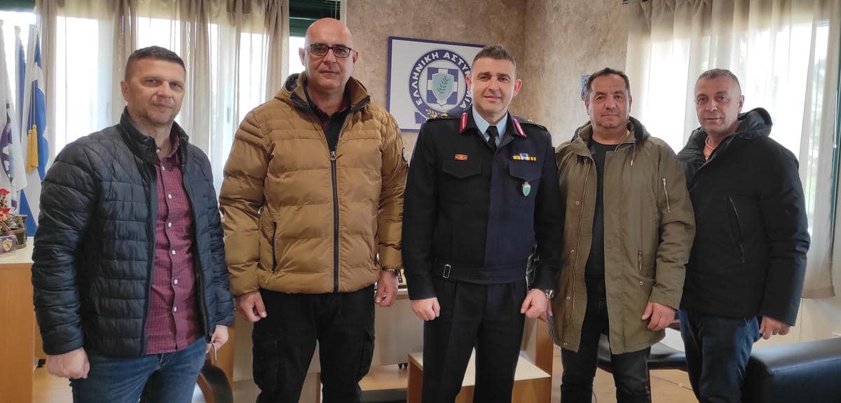 Ο Πρόεδρος της Ένωσης Συνοριακών Φυλάκων Καστοριάς, κ. Κυριάκος Παπουτσίδης και μέλη του Διοικητικού Συμβουλίου, συνοδευόμενοι από τον Γενικό Γραμματέα της Πανελλήνιας Ομοσπονδίας Συνοριακών Φυλάκων, κ. Ιωάννη Τοτονίδη πραγματοποίησαν εθιμοτυπική επίσκεψη στο Γενικό Περιφερειακό Αστυνομικό Διευθυντή Δυτικής Μακεδονίας, Ταξίαρχο κ. Νικόλαο Έξαρχο, προκειμένου να τον συγχαρούν και να του ευχηθούν καλή δύναμη για την ανάληψη των καθηκόντων του & κάθε επιτυχία στο έργο του, εκφράζοντας τη βεβαιότητα μιας εποικοδομητικής συνεργασίας.