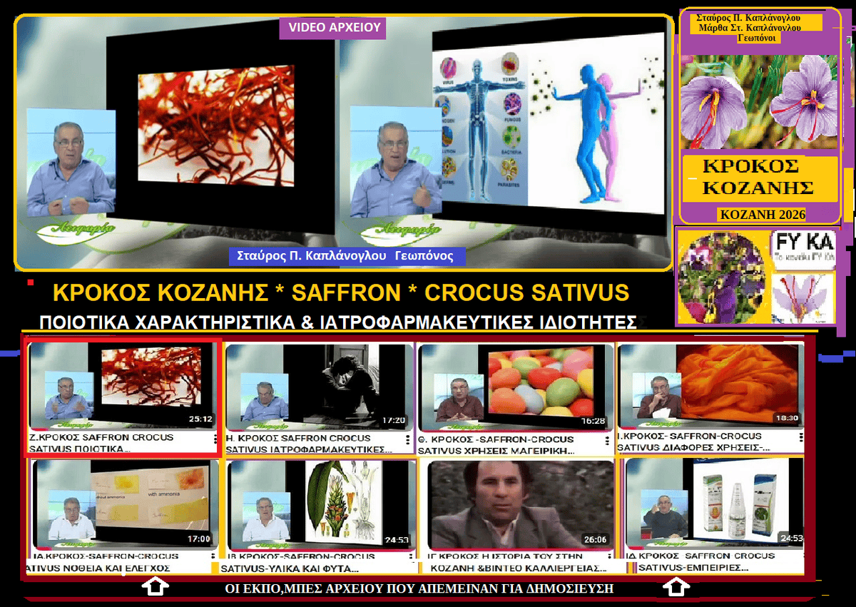Στην σημερινή δημοσίευση θα αναρτήσουμε ένα ακόμη video από το αρχείο μας , που άνηκε στην σειρά ΑΕΙΦΟΡΙΑ που πριν από 14 χρονιά κάθε εβδομάδα παρουσιάζαμε στο FLASH TV και αφορούσε την καλλιέργεια του φυτού Κρόκος Κοζάνης , τις ιδιότητες τις διάφορες χρίσης του κι όχι μόνον.