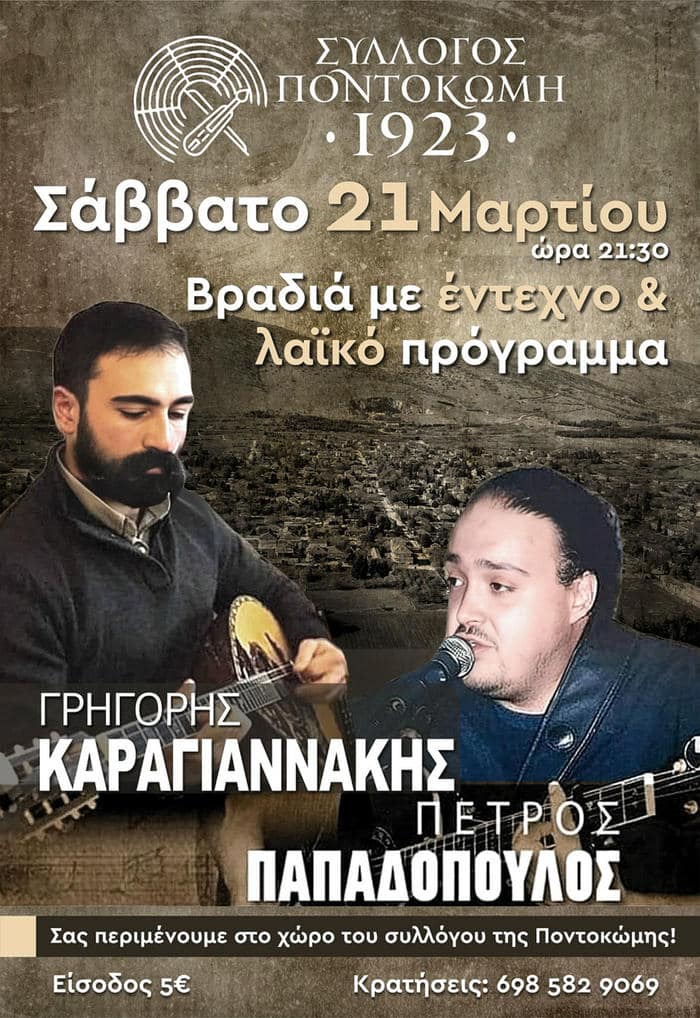 Εκδήλωση για μια βραδιά με έντεχνο και λαϊκό πρόγραμμα από τον σύλλογο «Ποντοκώμη 1923» στην Κοζάνη