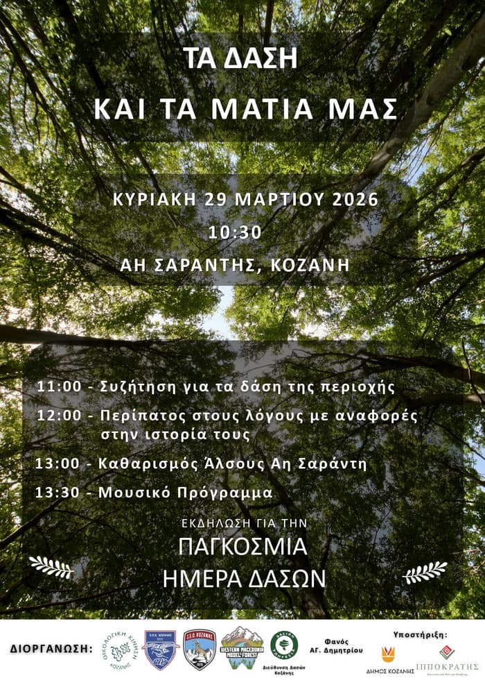 Με αφορμή την Παγκόσμια Ημέρα Δασών, η Οικολογική Κίνηση Κοζάνης, ο Φανός Αγίου Δημητρίου, η Διεύθυνση Δασών Κοζάνης, οι ορειβατικοί σύλλογοι Ε.Ο.Σ. και Σ.Ε.Ο. Κοζάνης και το Πρότυπο Δάσος Δυτικής Μακεδονίας (Western Macedonia Model Forest),