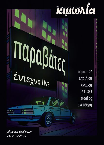 Ένα μοναδικό έντεχνο live σας περιμένει στην Κιμωλία, την Πέμπτη 2 Απριλίου με τους Παραβάτες!