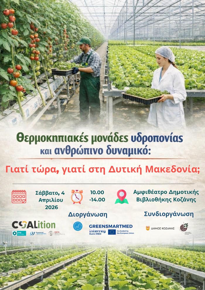 Ημερίδα θα πραγματοποιηθεί με θέμα ” Θερμοκήπια υδροπονίας στη Δυτική Μακεδονία” στην Δημοτική βιβλιοθήκη Κοζάνης